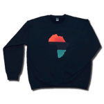 Size Large crew neck with multicolored African continent sublimated onto chest piece